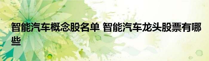 导读 大家好,小元来为大家解答问题。智能汽车概念股名单,智能汽车龙头股票有哪些这个很多人还不知道,现在让我们一起来了解下吧!