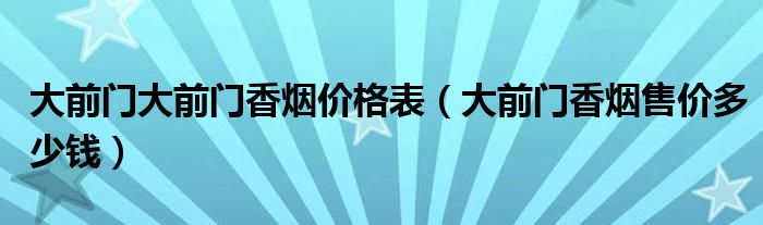大家好,综合小编来为大家讲解下。大前门大前门香烟价格表,大前门香烟售价多少钱这个很多人还不知道,现在让我们一起来看看吧!