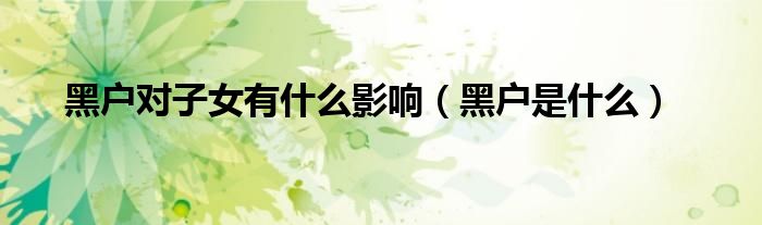 大家好,综合小编来为大家讲解下。黑户对子女有什么影响,黑户是什么这个很多人还不知道,现在让我们一起来看看吧!