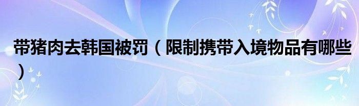 导读 大家好,综合小编来为大家讲解下。带猪肉去韩国被罚,限制携带入境物品有哪些这个很多人还不知道,现在让我们一起来看看吧!现在有很多人都会