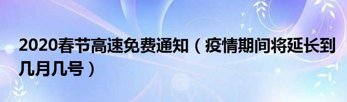 大家好,综合小编来为大家讲解下。2020春节高速免费通知,疫情期间将延长到几月几号这个很多人还不知道,现在让我们一起来看看吧!