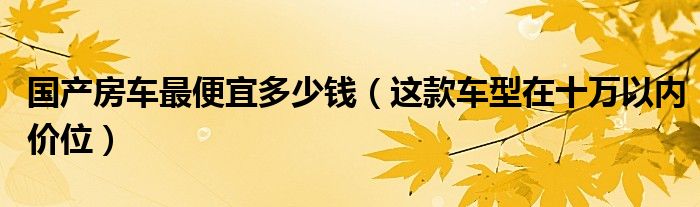 1、随着时代的变化,我们日常生活都迎来千变万化,出门旅游方式也发生很大改变,越来越多人喜欢购买房车,体验带着家旅游的感觉。然而,购买房车,很多人都比较钟情国内产品,那么,国产房车最便宜多少钱呢?