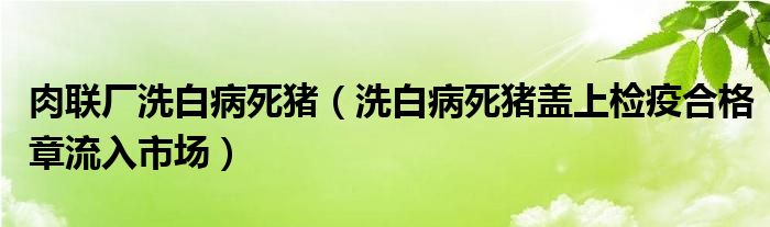 导读 大家好,综合小编来为大家讲解下。肉联厂洗白病死猪,洗白病死猪盖上检疫合格章流入市场这个很多人还不知道,现在让我们一起来看看吧!1、猪