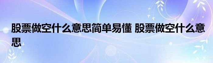 导读 大家好,小元来为大家解答问题。股票做空什么意思简单易懂,股票做空什么意思这个很多人还不知道,现在让我们一起来了解下吧!