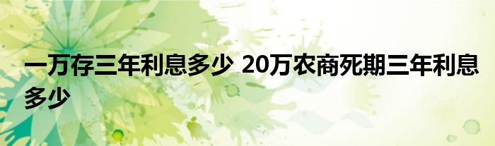 导读 大家好,小呗来为大家解答以上的问题一万存三年利息多少,20万农商死期三年利息多少,这个很多人还不知道,现在让我们一起来了解下吧!