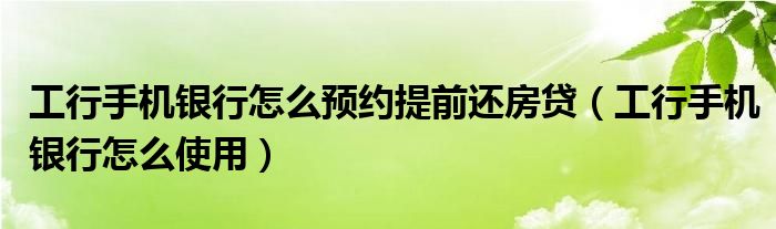 导读 大家好,综合小编来为大家讲解下。工行手机银行怎么预约提前还房贷,工行手机银行怎么使用这个很多人还不知道,现在让我们一起来看看吧!1、