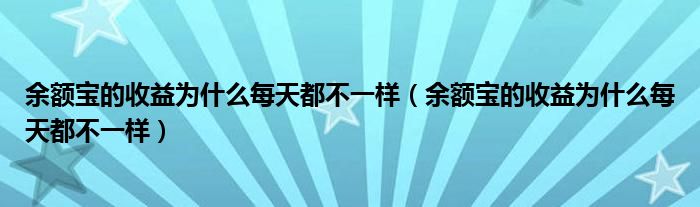 导读 大家好,综合小编来为大家讲解下。余额宝的收益为什么每天都不一样,余额宝的收益为什么每天都不一样这个很多人还不知道,现在让我们一起来看