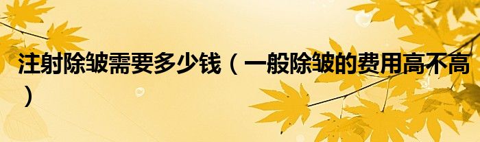 大家好,综合小编来为大家讲解下。注射除皱需要多少钱,一般除皱的费用高不高这个很多人还不知道,现在让我们一起来看看吧!