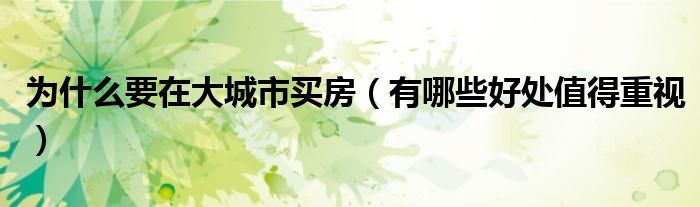 导读 大家好,综合小编来为大家讲解下。为什么要在大城市买房,有哪些好处值得重视这个很多人还不知道,现在让我们一起来看看吧!1、买房是很多人