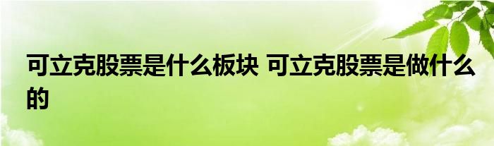 导读 大家好,小元来为大家解答问题。可立克股票是什么板块,可立克股票是做什么的这个很多人还不知道,现在让我们一起来了解下吧!