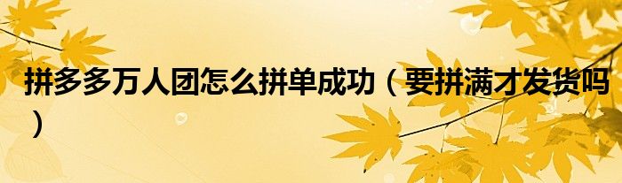 大家好,综合小编来为大家讲解下。拼多多万人团怎么拼单成功,要拼满才发货吗这个很多人还不知道,现在让我们一起来看看吧!