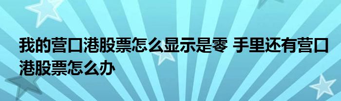 大家好,小元来为大家解答问题。我的营口港股票怎么显示是零,手里还有营口港股票怎么办这个很多人还不知道,现在让我们一起来了解下吧!