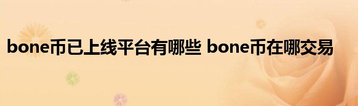 导读 大家好,小呗来为大家解答以上的问题bone币已上线平台有哪些,bone币在哪交易这个很多人还不知道,现在让我们一起来了解下吧!
