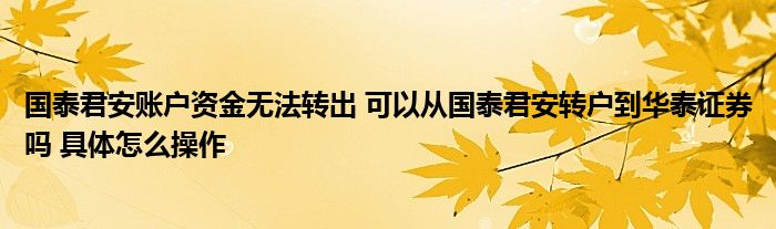 导读 大家好,小元来为大家解答问题。国泰君安账户资金无法转出,可以从国泰君安转户到华泰证券吗,具体怎么操作,这个很多人还不知道,现在让我