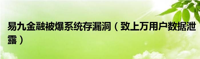 大家好,综合小编来为大家讲解下。易九金融被爆系统存漏洞,致上万用户数据泄露这个很多人还不知道,现在让我们一起来看看吧!