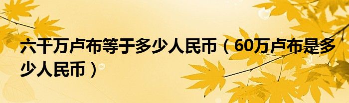 大家好,综合小编来为大家讲解下。六千万卢布等于多少人民币,60万卢布是多少人民币这个很多人还不知道,现在让我们一起来看看吧!