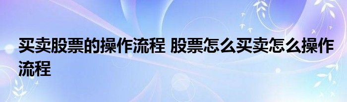 导读 大家好,小元来为大家解答问题。买卖股票的操作流程,股票怎么买卖怎么操作流程,这个很多人还不知道,现在让我们一起来了解下吧!