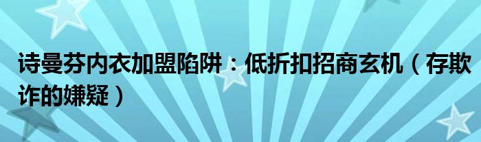 大家好,综合小编来为大家讲解下。诗曼芬内衣加盟陷阱:低折扣招商玄机,存欺诈的嫌疑这个很多人还不知道,现在让我们一起来看看吧!