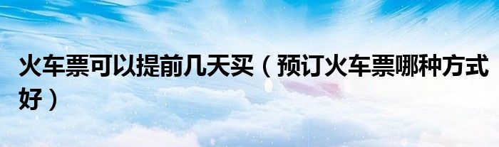 大家好,综合小编来为大家讲解下。火车票可以提前几天买,预订火车票哪种方式好这个很多人还不知道,现在让我们一起来看看吧!
