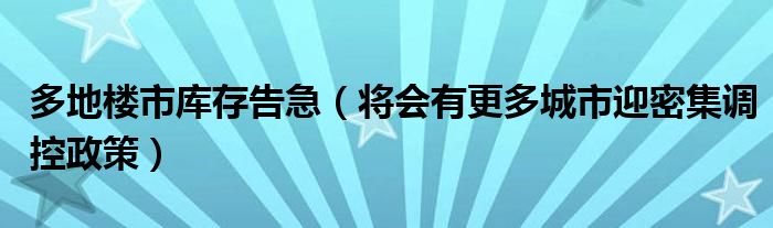 大家好,综合小编来为大家讲解下。多地楼市库存告急,将会有更多城市迎密集调控政策这个很多人还不知道,现在让我们一起来看看吧!