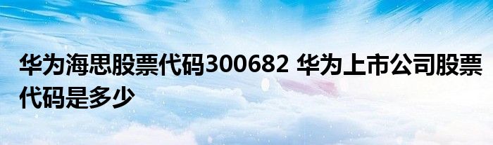 导读 大家好,小元来为大家解答问题。华为海思股票代码300682,华为上市公司股票代码是多少这个很多人还不知道,现在让我们一起来了解下吧!