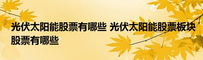 导读 大家好,小元来为大家解答问题。光伏太阳能股票有哪些,光伏太阳能股票板块股票有哪些,这个很多人还不知道,现在让我们一起来了解下吧!