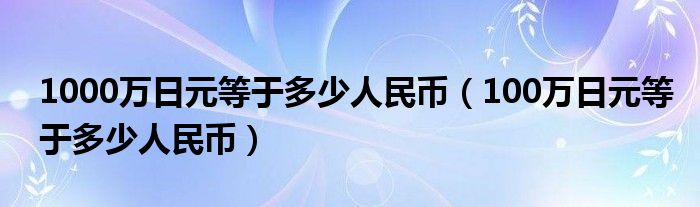 大家好,综合小编来为大家讲解下。1000万日元等于多少人民币,100万日元等于多少人民币这个很多人还不知道,现在让我们一起来看看吧!