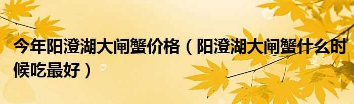 大家好,综合小编来为大家讲解下。今年阳澄湖大闸蟹价格,阳澄湖大闸蟹什么时候吃最好这个很多人还不知道,现在让我们一起来看看吧!