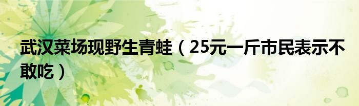 大家好,综合小编来为大家讲解下。武汉菜场现野生青蛙,25元一斤市民表示不敢吃这个很多人还不知道,现在让我们一起来看看吧!