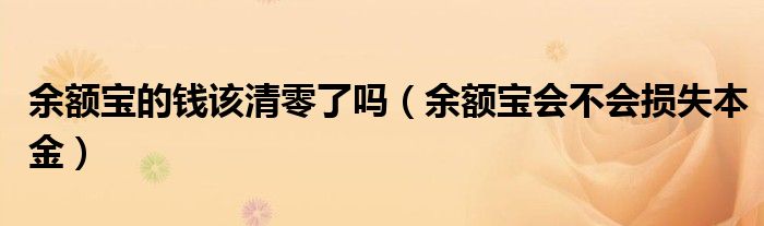大家好,综合小编来为大家讲解下。余额宝的钱该清零了吗,余额宝会不会损失本金这个很多人还不知道,现在让我们一起来看看吧!