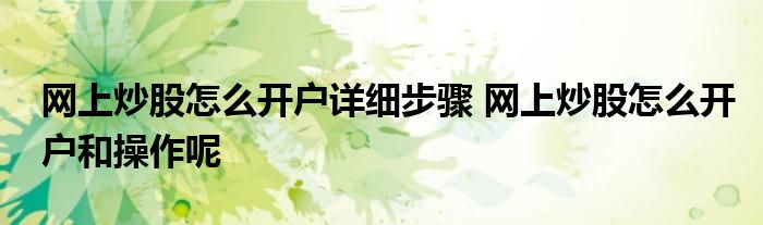 导读 大家好,小元来为大家解答问题。网上炒股怎么开户详细步骤,网上炒股怎么开户和操作呢这个很多人还不知道,现在让我们一起来了解下吧!