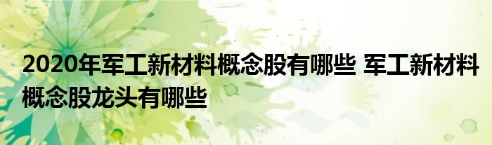 导读 大家好,小元来为大家解答问题。2020年军工新材料概念股有哪些,军工新材料概念股龙头有哪些这个很多人还不知道,现在让我们一起来了解下吧