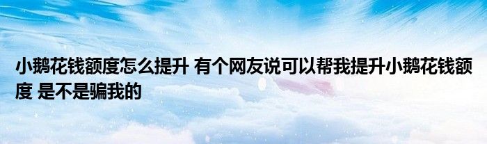 导读 大家好,小呗来为大家解答以上的问题小鹅花钱额度怎么提升,有个网友说可以帮我提升小鹅花钱额度,是不是骗我的这个很多人还不知道,现在让我