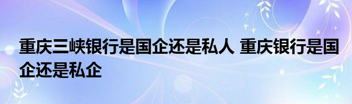 导读 大家好,小呗来为大家解答以上的问题重庆三峡银行是国企还是私人,重庆银行是国企还是私企这个很多人还不知道,现在让我们一起来了解下吧!