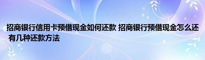 导读 大家好,小呗来为大家解答以上的问题招商银行信用卡预借现金如何还款,招商银行预借现金怎么还,有几种还款方法这个很多人还不知道,现在让我