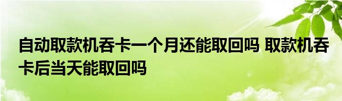 导读 大家好,小呗来为大家解答以上的问题自动取款机吞卡一个月还能取回吗,取款机吞卡后当天能取回吗这个很多人还不知道,现在让我们一起来了解下
