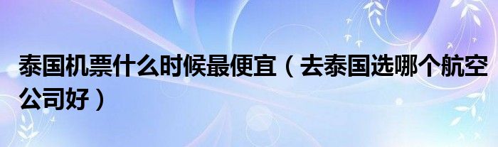 导读 大家好,综合小编来为大家讲解下。泰国机票什么时候最便宜,去泰国选哪个航空公司好这个很多人还不知道,现在让我们一起来看看吧!1、泰国是