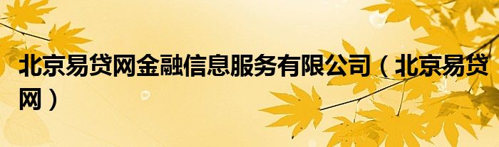 大家好,小卡来为大家解答以上问题。北京易贷网金融信息服务有限公司,北京易贷网很多人还不知道,现在让我们一起来看看吧!