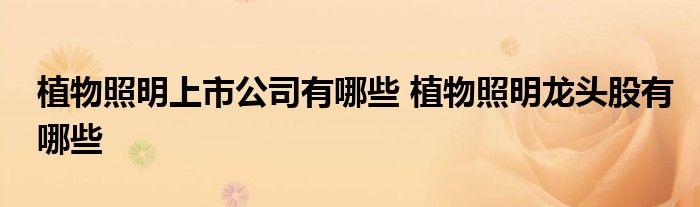 大家好,小元来为大家解答问题。植物照明上市公司有哪些,植物照明龙头股有哪些,这个很多人还不知道,现在让我们一起来了解下吧!