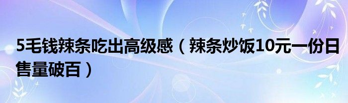 导读 大家好,综合小编来为大家讲解下。5毛钱辣条吃出高级感,辣条炒饭10元一份日售量破百这个很多人还不知道,现在让我们一起来看看吧!1、在不少