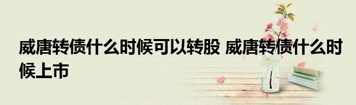 导读 大家好,小元来为大家解答问题。威唐转债什么时候可以转股,威唐转债什么时候上市,这个很多人还不知道,现在让我们一起来了解下吧!
