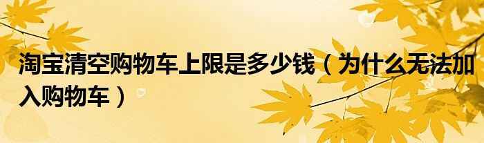 大家好,综合小编来为大家讲解下。淘宝清空购物车上限是多少钱,为什么无法加入购物车这个很多人还不知道,现在让我们一起来看看吧!