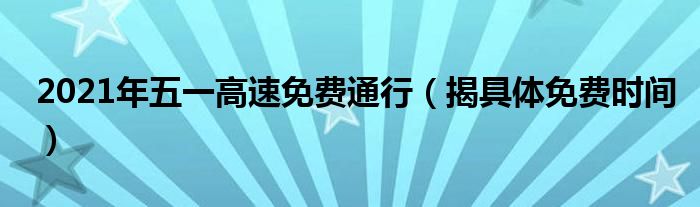 大家好,综合小编来为大家讲解下。2021年五一高速免费通行,揭具体免费时间这个很多人还不知道,现在让我们一起来看看吧!