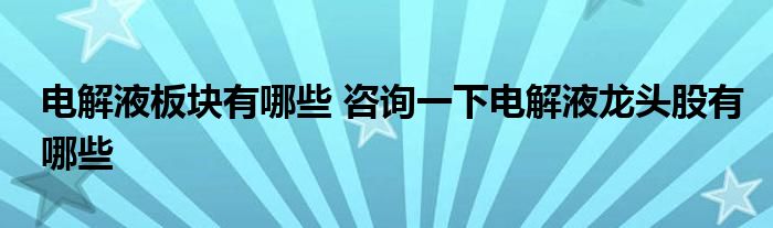 导读 大家好,小元来为大家解答问题。电解液板块有哪些,咨询一下电解液龙头股有哪些,这个很多人还不知道,现在让我们一起来了解下吧!