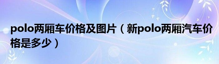 导读 大家好,综合小编来为大家讲解下。polo两厢车价格及图片,新polo两厢汽车价格是多少这个很多人还不知道,现在让我们一起来看看吧!1、你好,