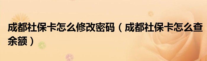 大家好,综合小编来为大家讲解下。成都社保卡怎么修改密码,成都社保卡怎么查余额这个很多人还不知道,现在让我们一起来看看吧!
