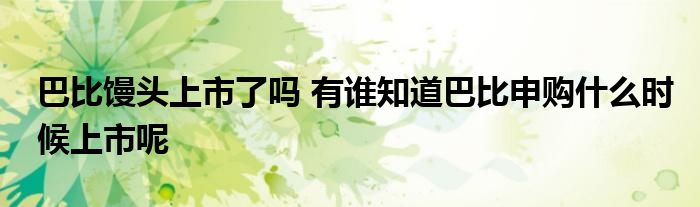 导读 大家好,小元来为大家解答问题。巴比馒头上市了吗,有谁知道巴比申购什么时候上市呢,这个很多人还不知道,现在让我们一起来了解下吧!