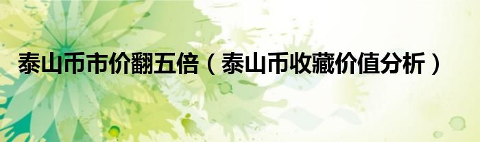 大家好,综合小编来为大家讲解下。泰山币市价翻五倍,泰山币收藏价值分析这个很多人还不知道,现在让我们一起来看看吧!
