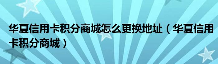 大家好,小卡来为大家解答以上问题。华夏信用卡积分商城怎么更换地址,华夏信用卡积分商城很多人还不知道,现在让我们一起来看看吧!
