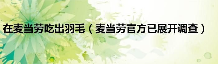 大家好,综合小编来为大家讲解下。在麦当劳吃出羽毛,麦当劳官方已展开调查这个很多人还不知道,现在让我们一起来看看吧!